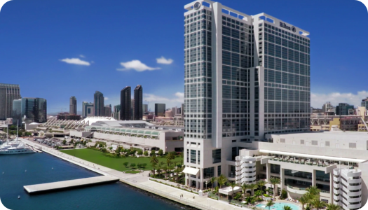 Stay at the Hilton San Diego Bayfront, the host hotel for Realcomm  IBcon 2026 and located just steps from the San Diego Convention Center. Take advantage of the exclusive $299 per night rate, available only to registered attendees and not offered anywhere else nearby. Rooms are limited and available on a first reserved basis, so book early to secure your spot!