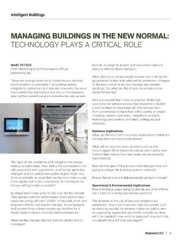environment is no exception. For building owners, or the new normal in we how manage and operate
