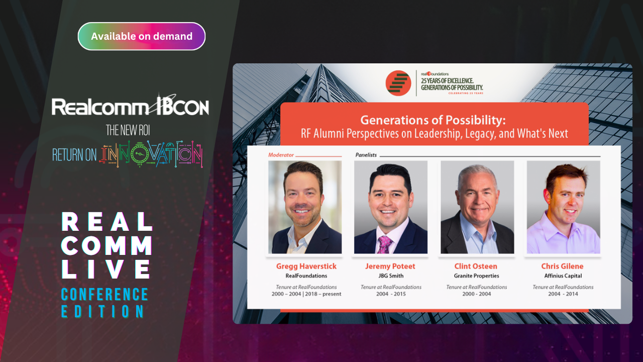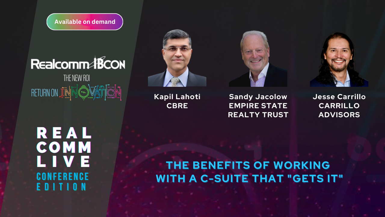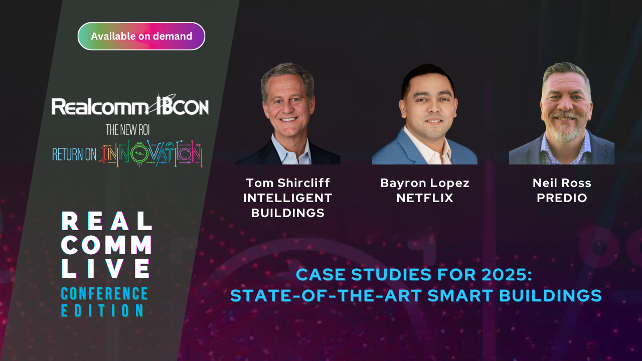 Realcomm Live episodes are available for viewing on demand. Our video library features visionary experts from around the world discussing CRE technology and innovation, industry news and current trends. Hear how commercial and corporate real estate owners, occupiers and tech professionals are implementing cutting-edge tech in buildings and across portfolios.